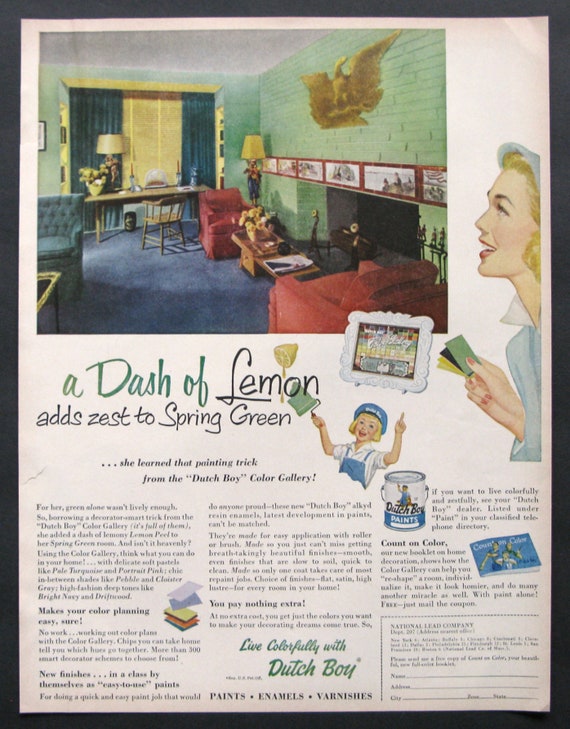 1953 Dutch Boy Paint Ad Retro 1950s Living Room Mid Etsy